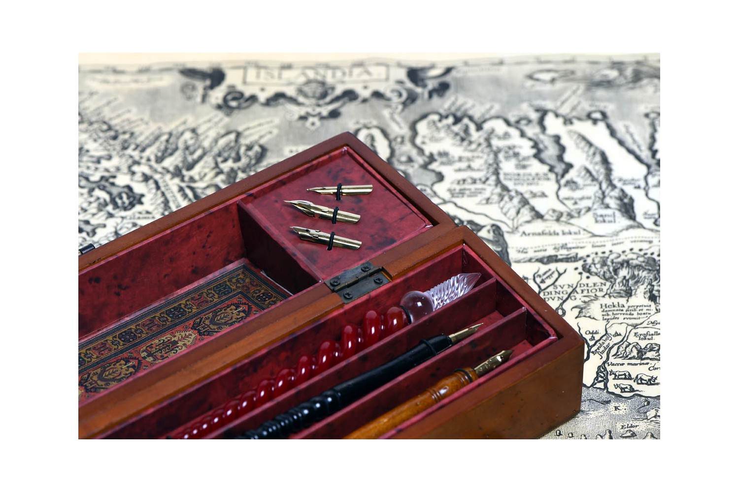 Plume d'oie, Stylet en bois, plumes d'acier et encre