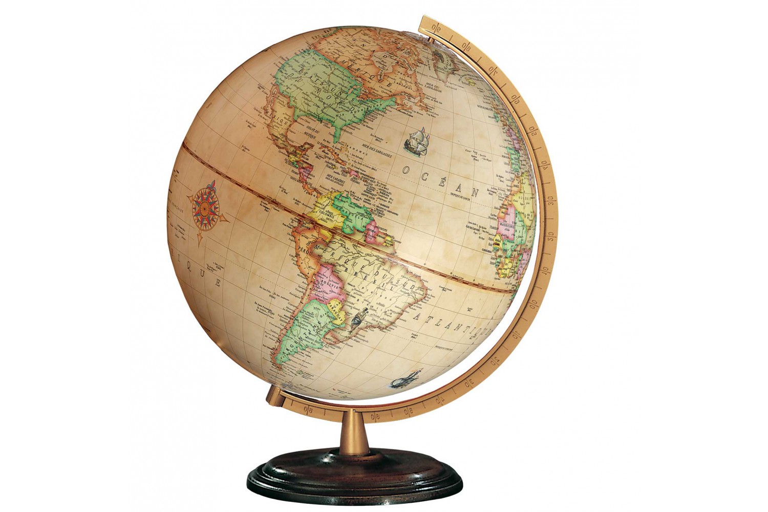 Ce globe élégant est monté sur un support bois massif et métal; il intègre les dernières évolutions géopolitiques.