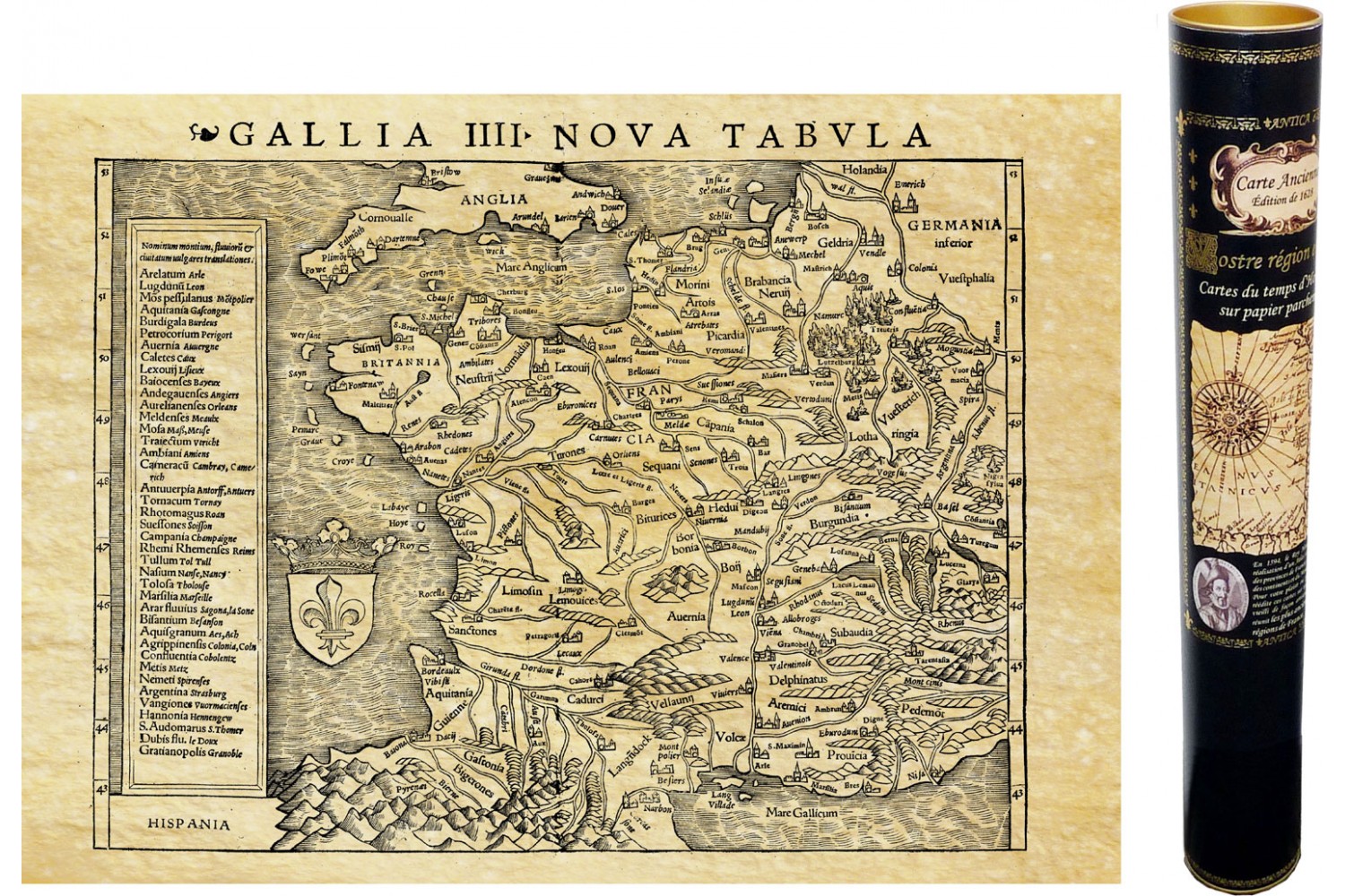 Superbe carte de 1540 basée sur les descriptions des historiens antiques tels que Strabon, Cicéron ainsi que sur les mémoires de Jules César
