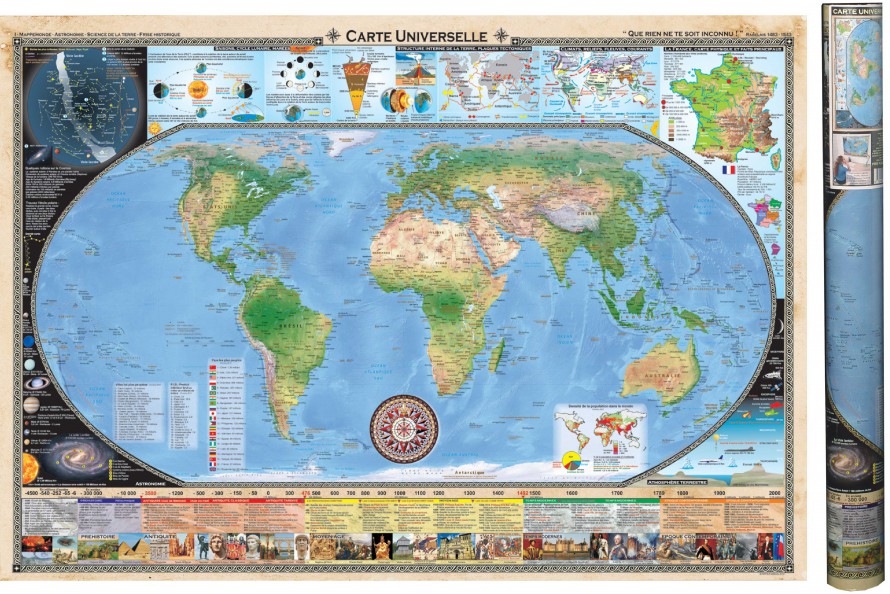Reprenant Une tradition hollandaise du XVII ème siècle, consistant à accrocher des cartes géographiques aux murs, nous vous proposons des impressions sur toile coton collée sur des baguettes en chêne (1/4 de rond 14 mm)